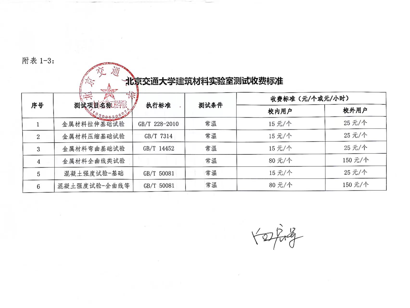 关于北京交通大学建筑材料实验室测试收费标准的公示