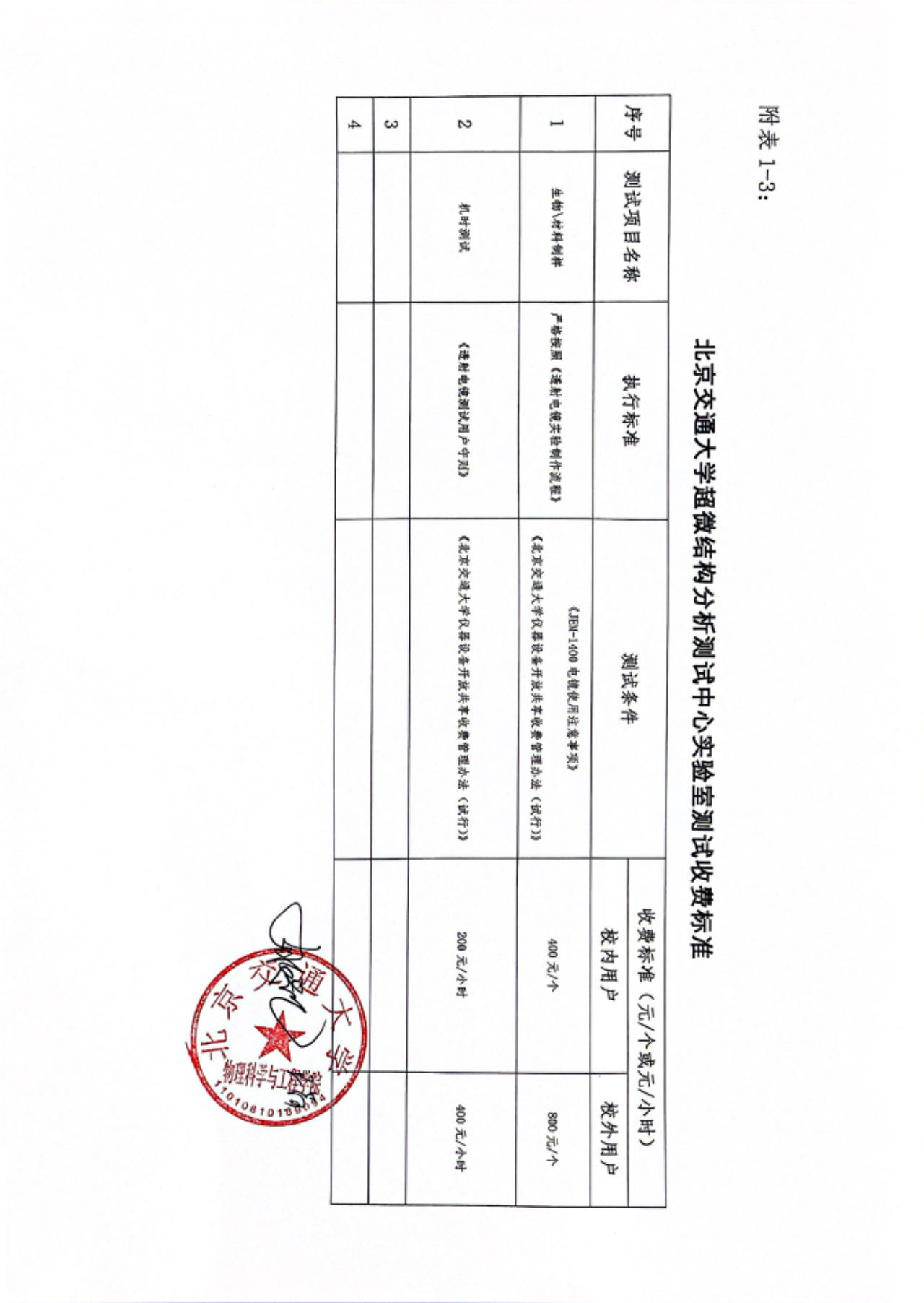 链接:北京交通大学超微结构分析测试中心实验室测试收费标准